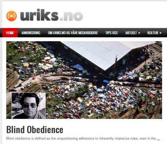ノルウェーのニュースメディア URIKS.no は2013年8月22日のトップ記事として「盲目的従順」と題する記事を掲載しました。これは2013年11月号のものみの塔に露骨に盲目的従順を求める文章が掲載されたことに応じたものです。